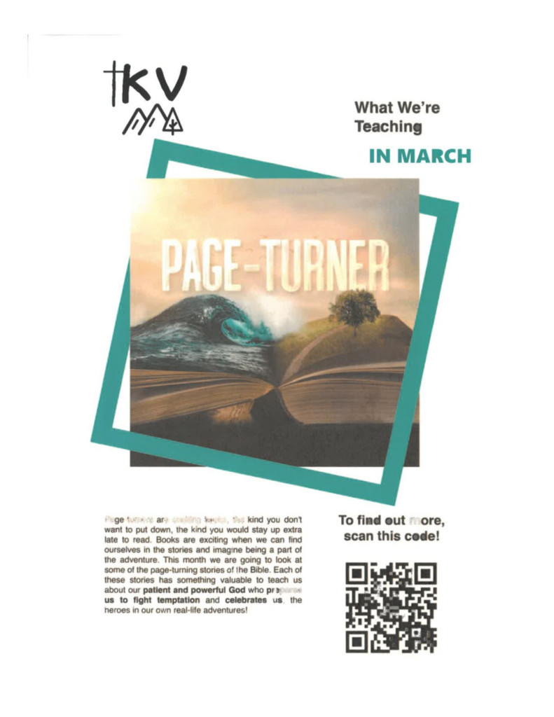 Page-turners are exciting books, the kind you don’t want to put down, the kind you would stay up extra late to read. Books are exciting when we can find ourselves in the stories and imagine being a part of the adventure. This month we are going to look at some of the page-turning stories of the Bible. Each of these stories has something valuable to teach us about our patient and powerful God who prepares us to fight temptation and celebrates us, the heroes in our own real-life adventures!